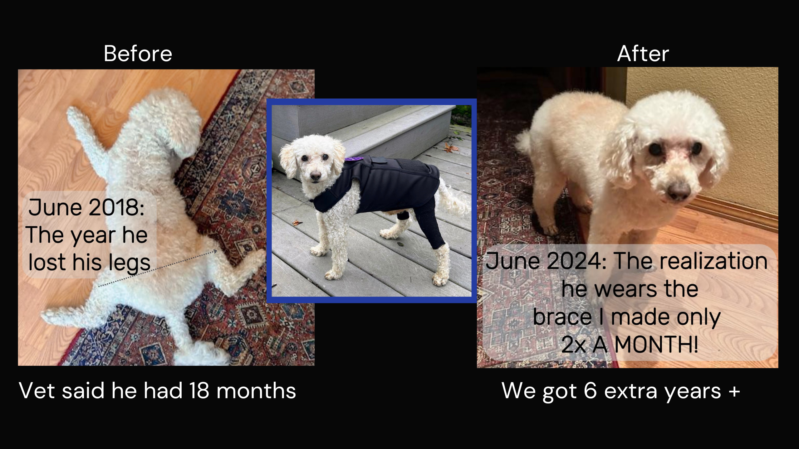 We’ve seen incredible stories of dogs who thrive with this support—including the inventor’s own dog, who is now 19 and still going strong.